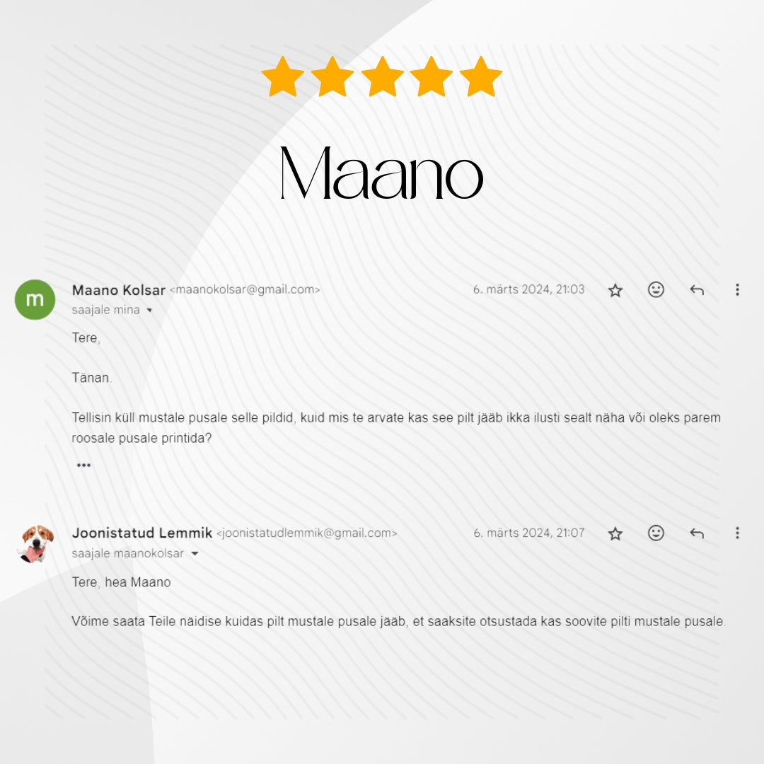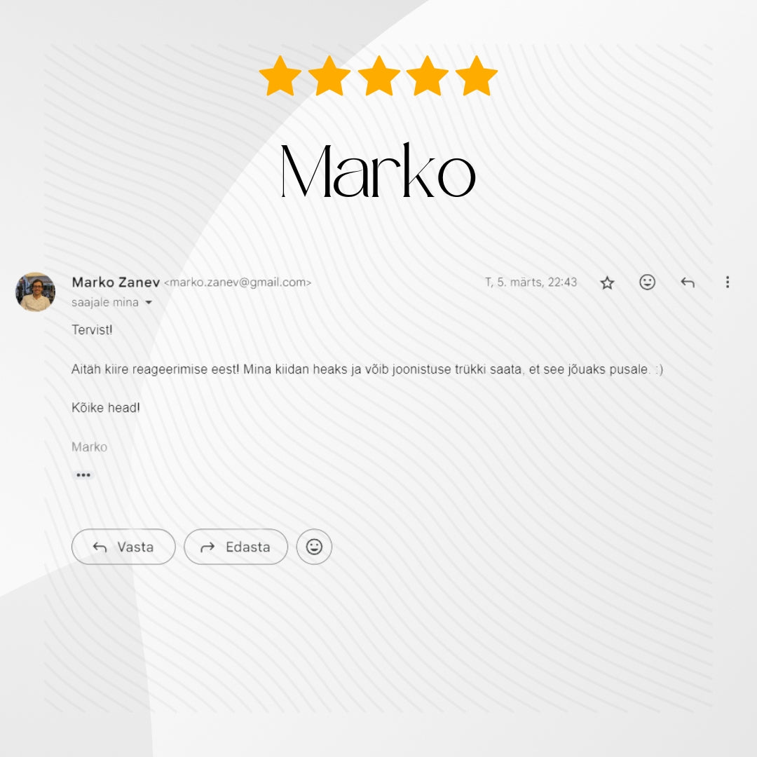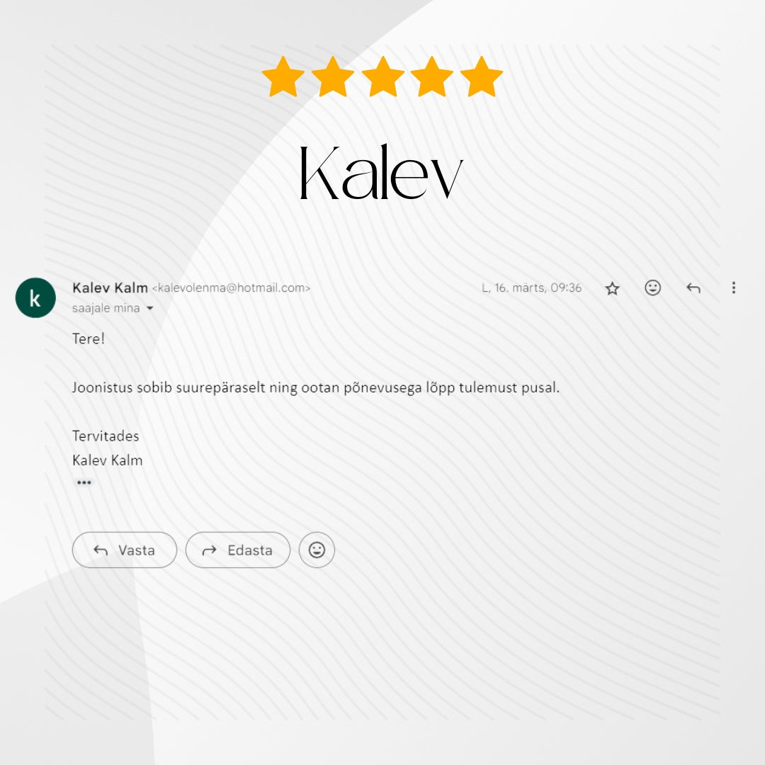 Ära muretse! Meie eesmärk on pakkuda sulle parimat kliendikogemust. Sa saad küsida oma joonistusele piiramatus koguses muudatusi.